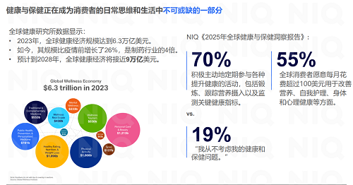 近年來,中國健康與保健行業正經歷快速變革,消費者健康意識和需求也在持續提升。尼爾森IQ研報顯示,預計到2028年,全球健康經濟規模將接近9萬億美元,中國消費市場也將呈現六大關鍵趨勢。