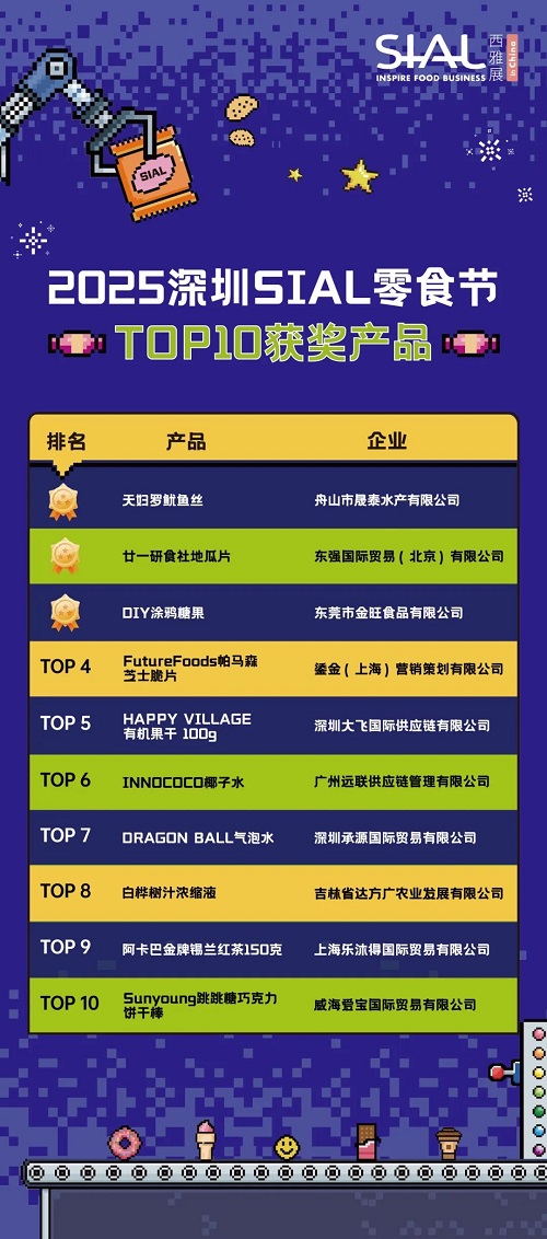 累計收到全球200+件參賽產品,涵蓋休閑食品、進口食品、健康食品、飲品等熱門品類,經過獨立權威評審團的嚴格篩選,最終評選出金銀銅獎及前十產品!癝IAL創新大賽不僅是新品競技的世界舞臺,更是洞察消費趨勢的窗口,通過大賽我們獲得大量關注,品牌影響力大幅提升!”金獎獲得者—湖南立方體食品有限公司負責人表示。