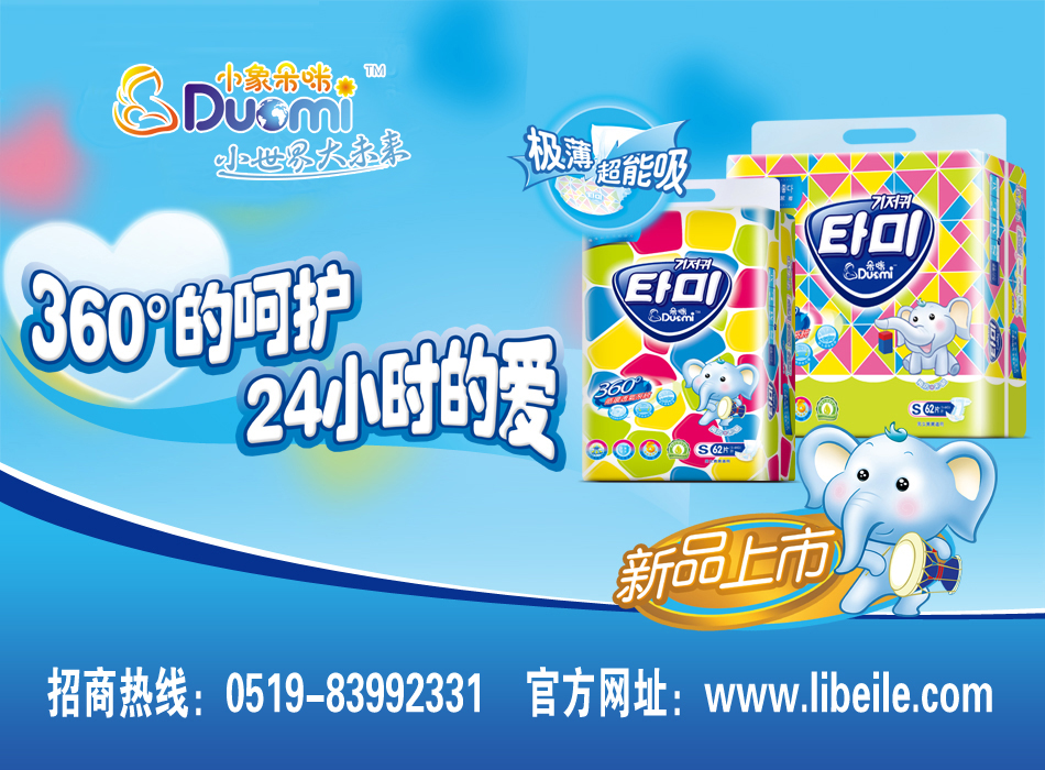 目前公司旗下有利貝樂、滿聰、艾樂丸、朵咪4大品牌,全國代理商數量達200多家,產品終端銷售門店達3500家左右。自2012年開始,公司結合行業環境從市場戰略角度出發,潛心研發嬰童用品品牌“朵咪”嬰童紙尿褲系列產品。目前“朵咪”品牌產品已經全面上市,并得到廣大客戶和消費者的親睞。