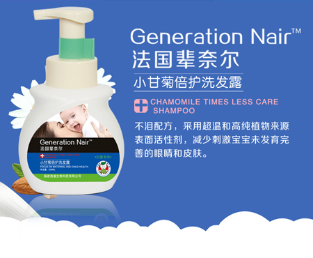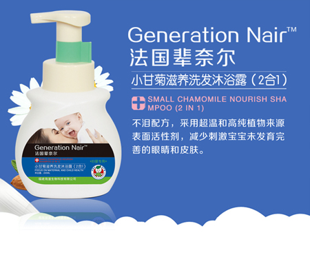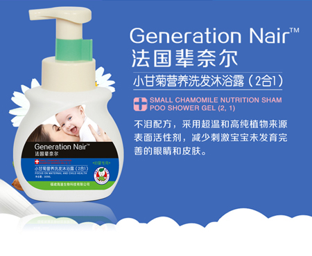 “Generation Nair法國輩奈爾”是公司傾力打造研發的核心品牌,秉承“取自然之初,育生命之初”的品牌核心理念,積極打造一個更安全,更放心的嬰童護理品牌。我們堅持運用先進的生物科技提煉天然谷物精華來生產“Generation Nair 法國輩奈爾”系列嬰童護理產品,并對生產工藝和產品質量嚴格把關,為寶寶的成長我們竭盡全力。