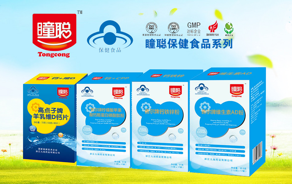 2007年浙江九旭藥業有限公司食品科學研究所與醫學科學院藥物研究所、浙江大學等多家科研機構和院校通力合作,共同研發出了以孕嬰童等人群為主的營養保健食品品牌——童聰,2014年童聰又生發出姐妹品牌——瞳聰。經過幾年市場檢驗,童聰/瞳聰日益強大,已發展成擁有成熟渠道,經銷網絡遍及全國的知名品牌。