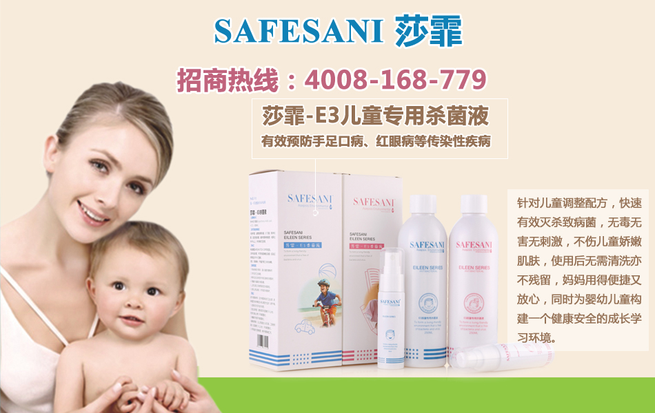莎霏-E3殺菌液,針對兒童調整配方,快速有效滅殺致病菌,無毒無害無刺激,不傷兒童嬌嫩肌膚,使用后無需清洗亦不殘留,媽媽用得便捷又放心,同時為嬰幼兒童構建一個健康安全的成長學習環境。